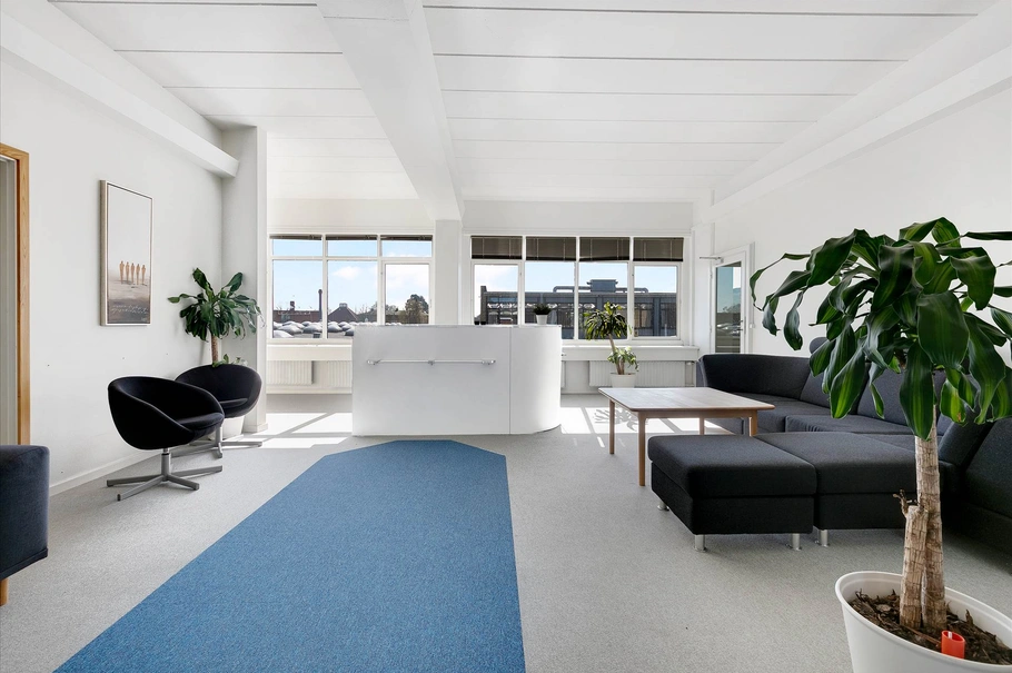 Lejemålet indeholder herudover en del pæne præsentable fællesarealer, så som en god frokoststue, omklædningsrum, toiletrum, mødelokale samt stort indgangsparti/forkontor.
