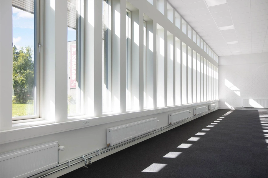 Dette lokaler vil være perfekt til showroom eller salgslokaler. De øvrige lokaler har normal kontorlofthøjde, men kontorlokalerne har vinduesbånd i hele facadelængden.