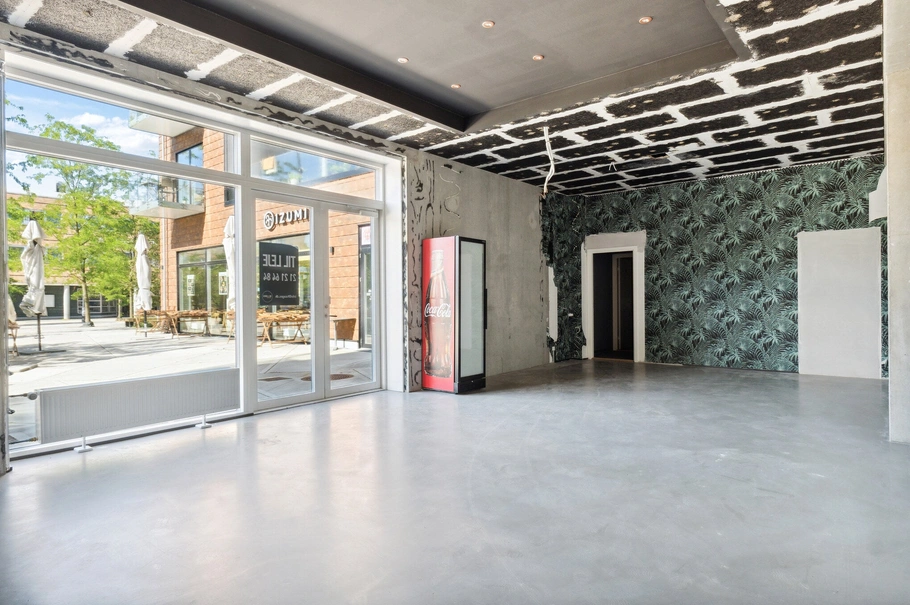 Lejemålene overtages uden indretning, og den ny lejer skal selv indrette sin nye butik. Der er store flotte glaspartier i facaden både ud mod pladsen og mod gaden. Der er mulighed for ude servering.