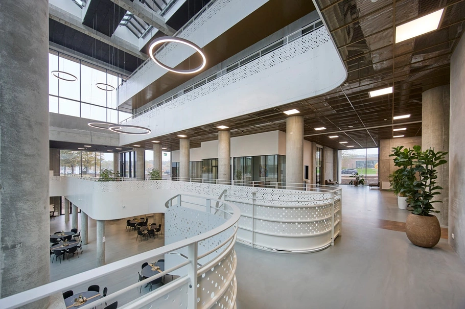 - Flerbrugerhus med kantine, café, mødecenter, reception, fitness, sundhedscenter, p-hus m.m.