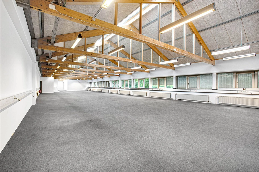 Charmerende lyst kontor i stueplan med synlig tagkonstruktion og loft til kip. Lokalerne er indrettet med storrumskontor, stort mødelokale, frokoststue område og toiletforhold.