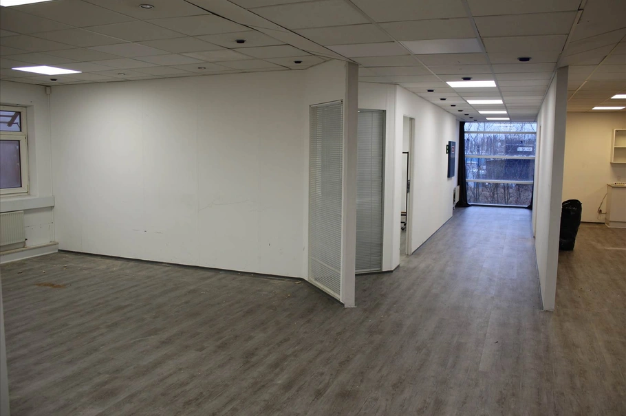 Lejemålet er indrettet med fordelingsgang, køkken med spiseplads, storrumskontor, mødelokale og 2 toiletter.