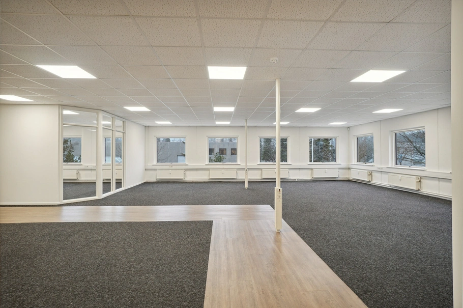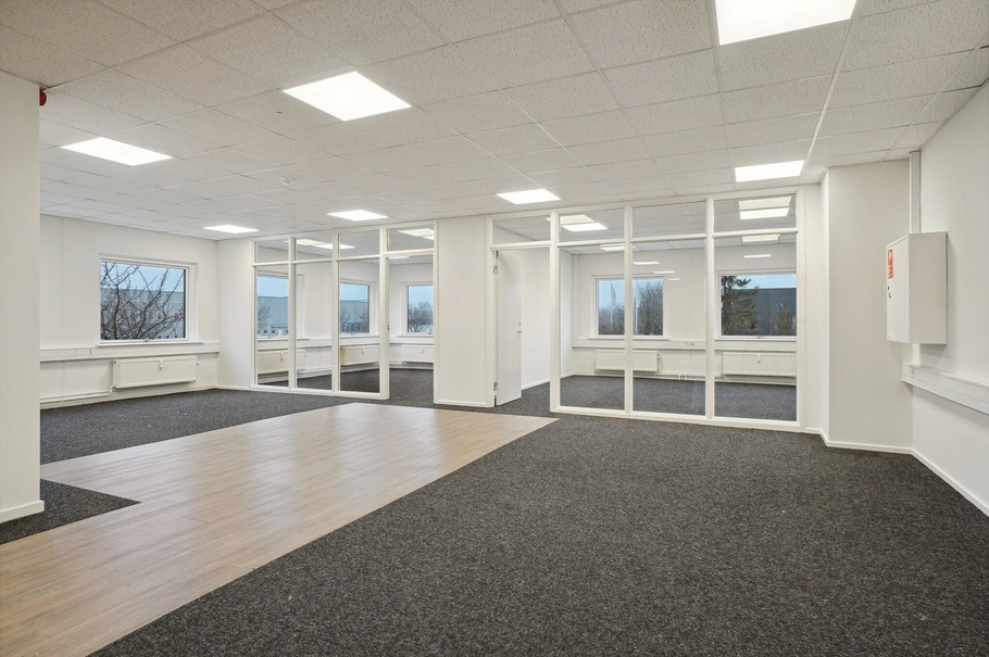 Et nyligt istandsat kontor på 1.450 m² er nu tilgængeligt til leje på Kornmarksvej 6 i Brøndby. Der er mulighed for opdeling fra 300 m².