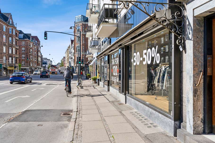 Vi kan nu tilbyde et flot, rummeligt og historisk lejemål. Det store butikslejemål byder på spændende muligheder i moderne, lyse og historiske rammer. I stueetagen af den hvide klassiske ejendom bliver forbipasserende mødt af store vinduespartier, der inviterer gæsterne ind i lejemålets store og åbne butikslokale.