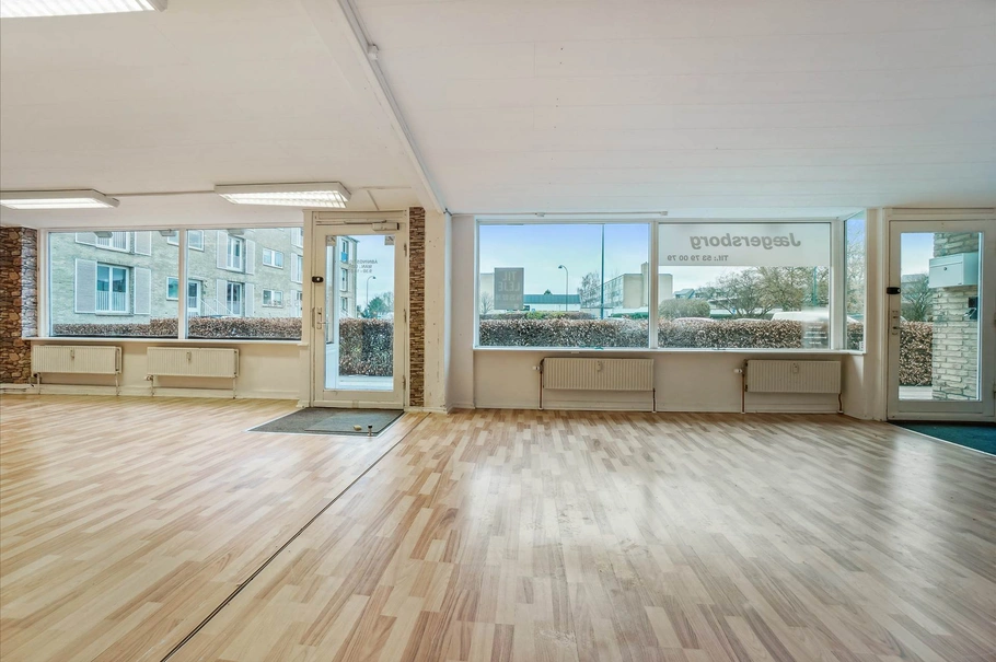 Mindre erhvervslejemål beliggende lige overfor Netto, og med god facade og to store vinduer ud mod Smakkegårdsvej.