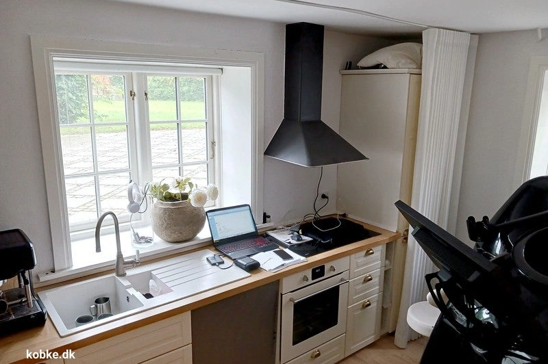 reception. Her er nyere åbent køkken. Flot brusebadeværelse. Stort lyst kontor med vinduer med 2