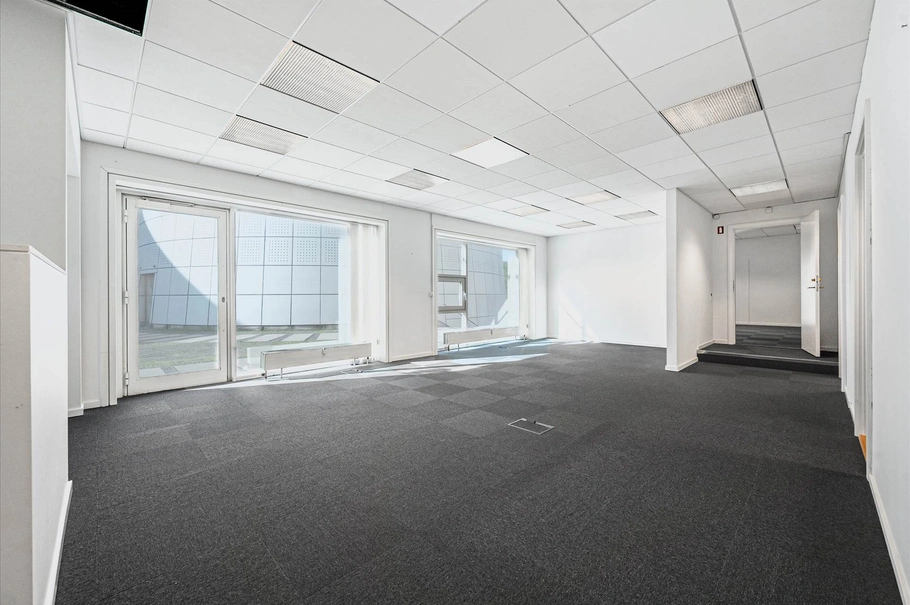 Med niveaufri adgang er lejemålet let tilgængeligt og imødekommer behovene for en bred vifte af virksomheder, herunder kontorer og klinikker. Lejemålet er indrettet med væg til væg gulvtæpper samt kvadratlofter med indbyggede lysarmaturer.