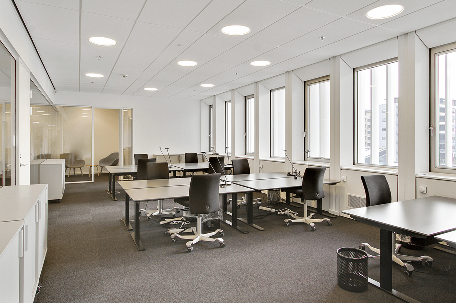 Alle lejemål er beliggende ud mod facaderne, så alle arbejdspladserne har et stort og naturligt lysindfald. Gulv til loft glasvægge adskiller lejemålene fra den fælles gangzone.