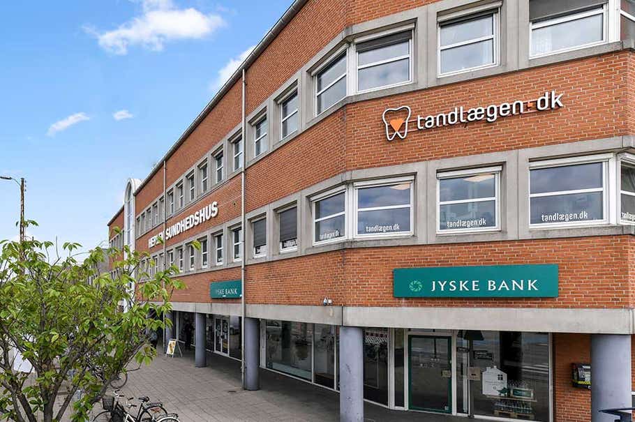 I stueetagen bor Jyske Bank, Kirkens Genbrug og Fitness World, mens resten af ejendommen benyttes til kontor og klinik formål.