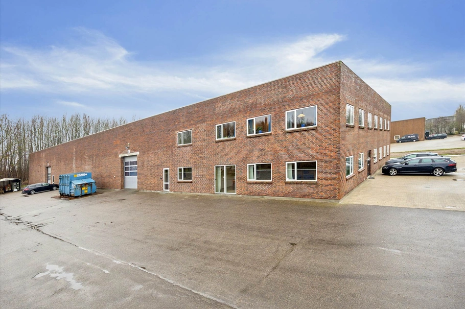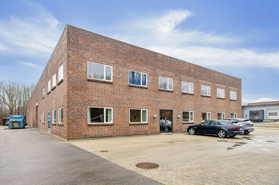 Reel lager/ produktionshal på 1.200 m² med en loftshøjde på 6,4 m under drager der er adgang via og døre. Indskudt dæk på ca. 100 m², værkførerkontor samt selvstændige bade- og omklædningsfaciliteter i forbindelse med hallen.
