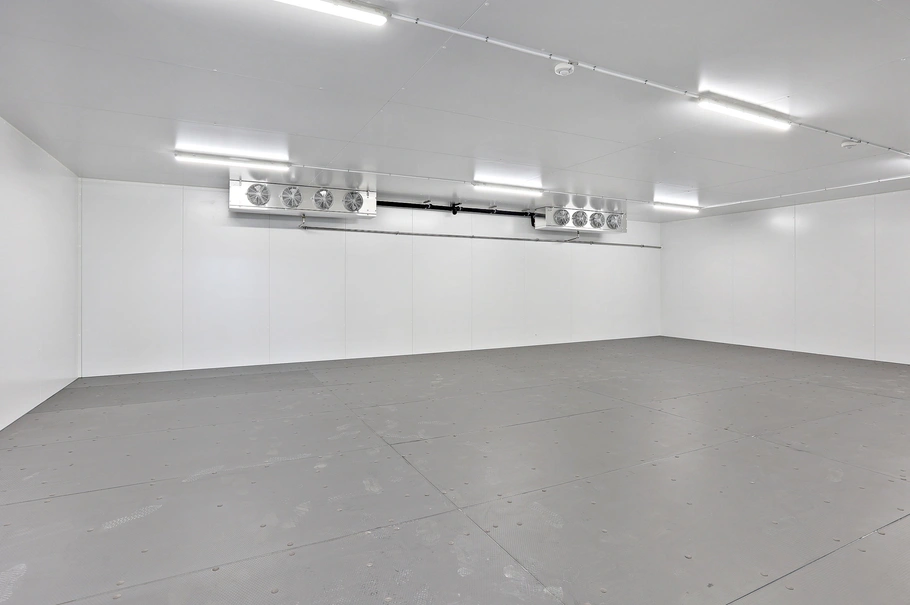 Dette rummelige lejemål tilbyder et stort kølelager, et nyetableret frostrum med temperaturer ned til -18 grader, samt en velfungerende produktionssektion. Der er delvis automatisk portlukning mellem sektionerne, hvilket sikrer en effektiv arbejdsproces. Derudover er der en nyindrettet kontor- og mandskabsafdeling med en spiseafdeling og moderne toilet- og badefaciliteter.