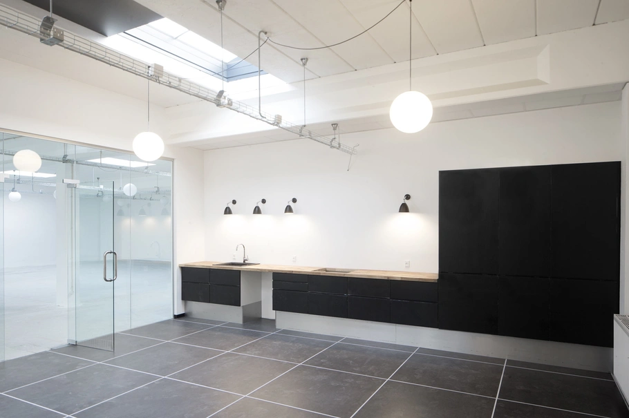Lejemålet omfatter et stort, moderne anretterrum med tilhørende spiseplads, elegant indrettet med glasvæg og skydedørsparti i ægte New Yorker-stil.