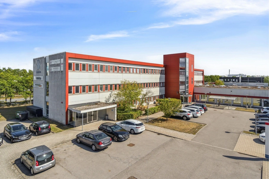 Ejendommen:Ejendommen, opført i 1972 og moderniseret i 1999. Ejendommen har en præsentabel facade af beton og røde facade elementer. Ejendommen rummer tre etager med kontorlokaler, der kan opdeles eller sammenlægges efter behov. Til ejendommen er et stort antal parkeringspladser til rådighed for ejendommens lejere, hvilket gør ejendommen ekstra attraktiv for både ansatte og besøgende.