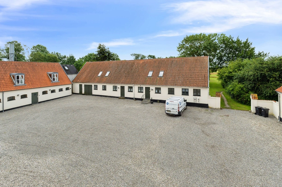 Ejendommen har tidligere været en gård, der nu er istandsat til kontorer.