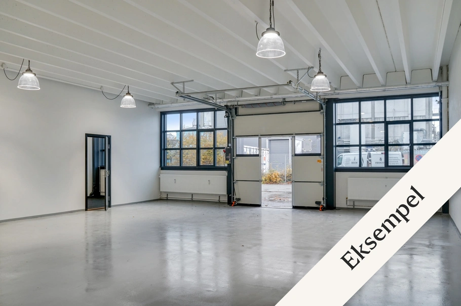 Flot istandsat lejemål i førsteklasses materialer. Lejemålet byder på et stort lager/showroom samt et veloplyst kontor. Der er også en spiseafdeling og et toilet. Adgang til lageret sker via en stor port.