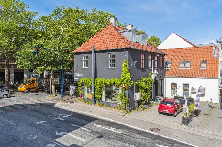 Lejemålet ligger på hjørnet af Lyngby Hovedgade og Nørgårdsvej og fremstår totalt renoveret.