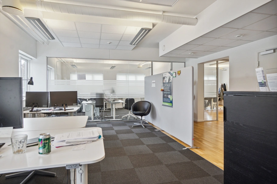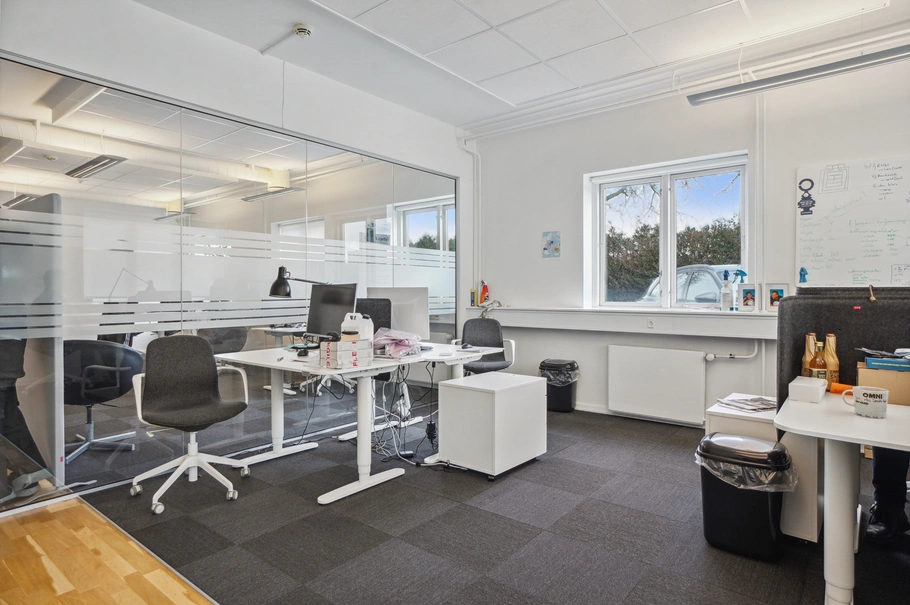 Kontorlejemålet på 1. sal, på 305 m², og stueetagen, på 208 m², er begge nyistandsatte. Kontorerne er rummelige og moderne med en attraktiv indretning. Faciliteter såsom mødelokaler og køkkenfaciliteter er tilgængelige.