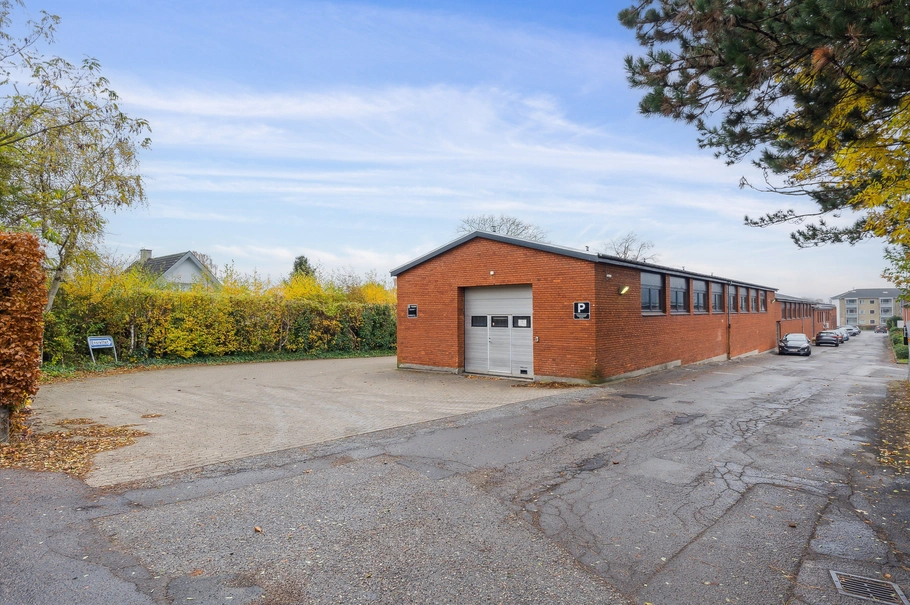 Ejendommens layout gør den let tilgængelig både for medarbejdere og leverandører, med en synlig hovedindgang og separate adgangsmuligheder til lageret. Parkeringspladser lige ved ejendommen er en ekstra fordel.