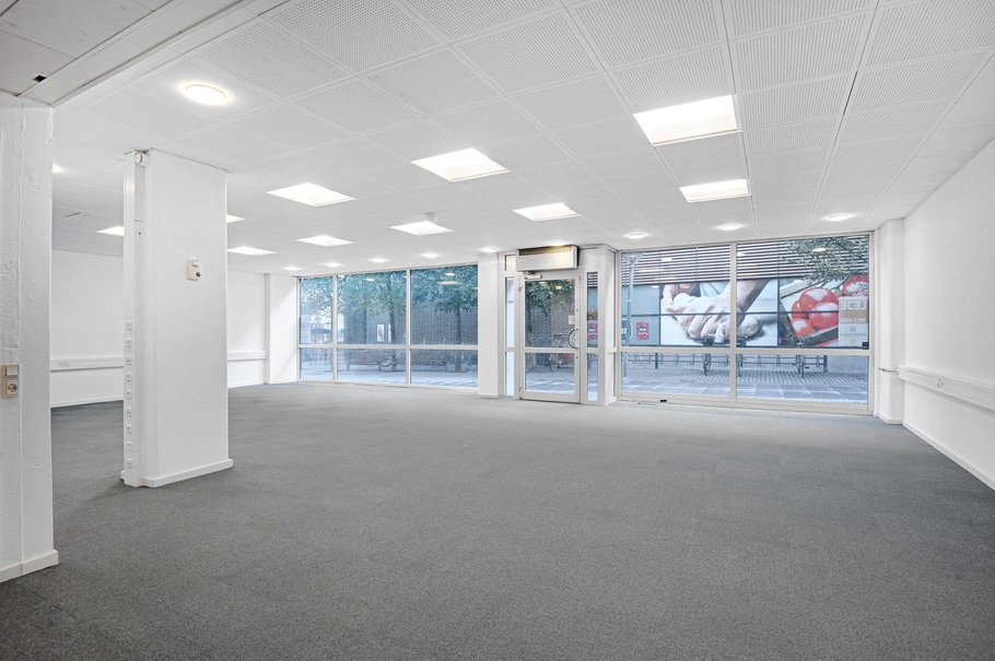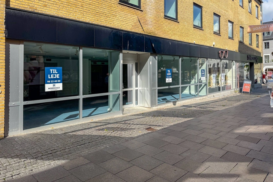 Lejemålet har niveaufri adgang direkte fra gågaden via markant indgangsdør, og lokalerne rummer i alt 140 m². Disse består primært af åbent og rummeligt butiksareal klar til lejers indretning og aptering. Lejemålet har en rigtig god synlighed og med gode muligheder for udstilling, hvilket primært kan henføres til de brede facadevinduer på begge sider af indgangsdøren.