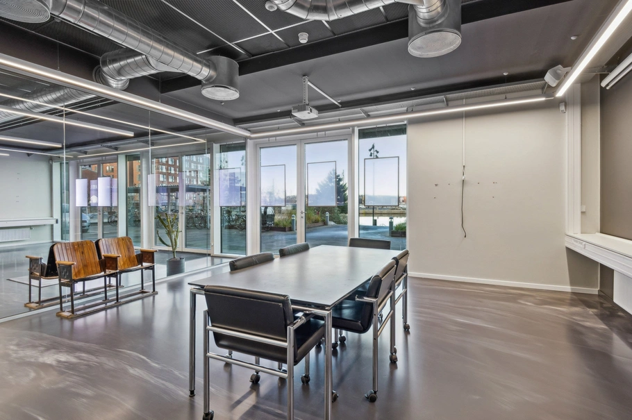 Lejemålet, som er beliggende i stueplan, er yderst velindrettet med stort åbent højloftet lyst kontorlandskab, som har store udstillingsvinduer og flot udsigt udover Østre Havn. Desuden er der glasvægge ind til 2 store mødelokaler/kontorlokaler, tekøkken, toilet, handicaptoilet og arkivrum.