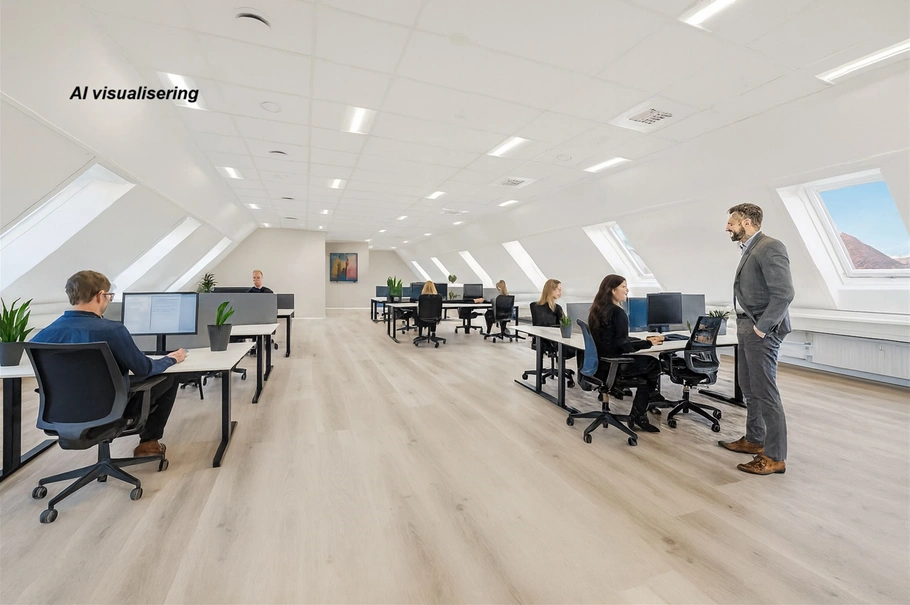Flot totalrenoveret kontorlejemål med gratis parkering