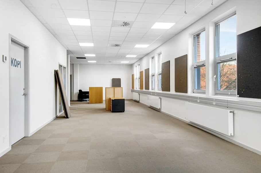 Lejemålet er placeret i stueplan i en attraktiv og velholdt ejendom. Lokalerne er i øjeblikket indrettet med cellekontorer, mødelokaler og storrumskontor samt et større køkken. Der er et nedsænket systemloft med moderne LED-belysning, og lokalet er desuden udstyret med et effektivt ventilationssystem, der sikrer optimal komfort.