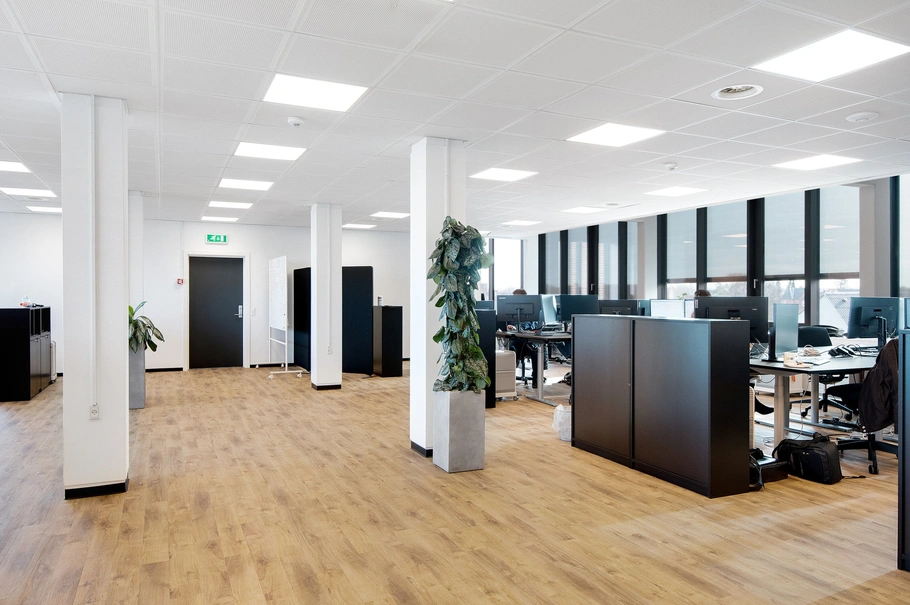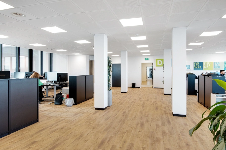 På central placering på Eternitgrunden i Aalborg, udlejes moderne kontorlokaler i ét plan på i alt 820 m².
