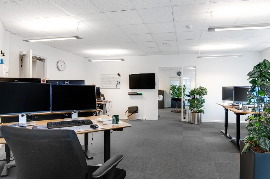 Lejemålet er placeret på 1. sal i en attraktiv og velholdt ejendom. Lokalerne er i øjeblikket indrettet med cellekontorer, mødelokaler, toiletter og depotrum. Der er et nedsænket systemloft med moderne LED-belysning, og lokalet er desuden udstyret med et effektivt ventilationssystem, der sikrer optimal komfort.