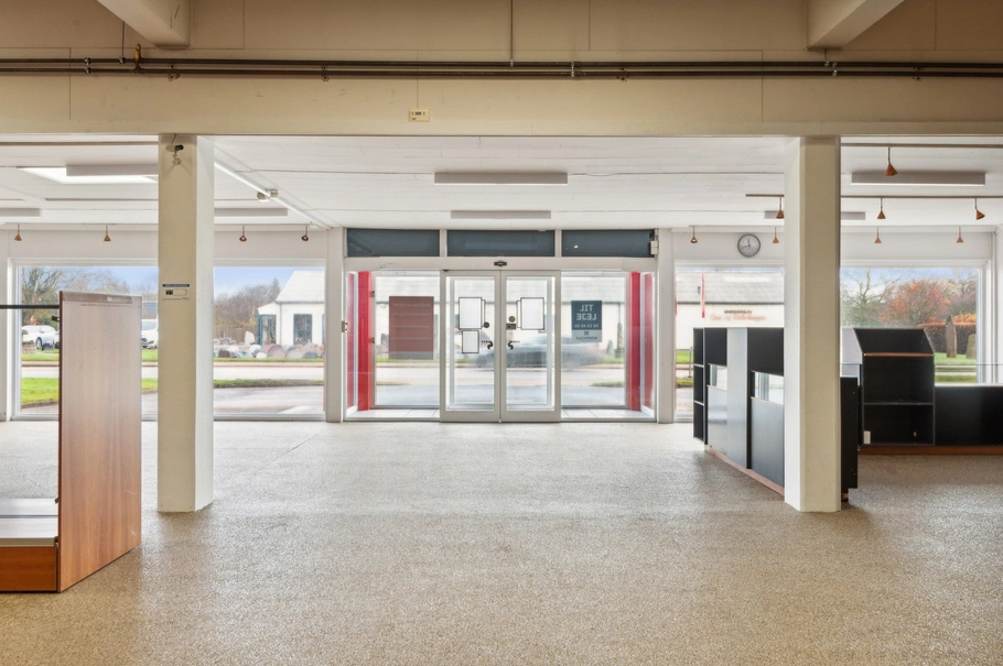 Lejemålet som er velegnet til butik/showroom, har en meget synlig og bred facade og er indrettet med niveaufri vindfang med skydedøre, lyst regulært butikslokale med gode udstillingsvinduer og fin grundbelysning, 2 toilletter, personalerum med køkken, 2 store kontorlokaler samt lager med adgang til rampe.