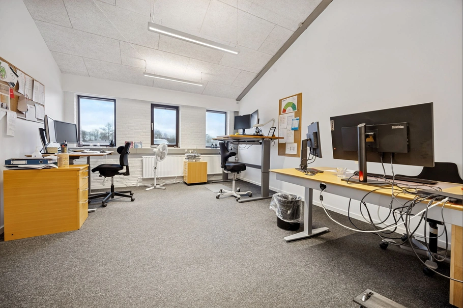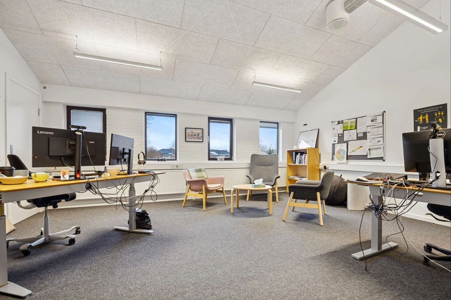 På Kornumgårdsvej 16 i Brønderslev udbydes et attraktivt kontorlejemål på i alt ca. 1.400 m², fordelt på to etager. Lejemålet fremstår funktionelt indrettet og velegnet til virksomheder med behov for både kontorer, mødelokaler og fællesfaciliteter.
