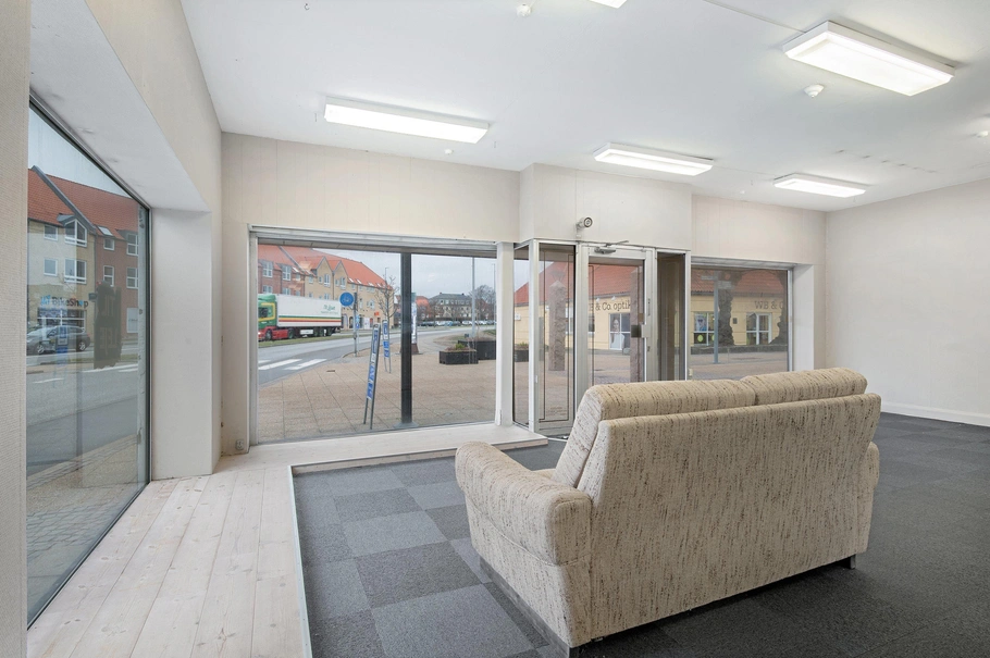 Hvis din virksomhed har behov for facadeværdi og synlighed, så udbyder Nordicals Vendsyssel hermed en af Frederikshavns absolut bedste beliggenheder. Lejemålet har en meget attraktiv placering i forhold til profilering og facadeværdi, da ejendommen ligger direkte ud til lyskrydset ved gågadens sydlige indgang med udstillingsvinduer både i gågaden i Søndergade og ud mod lyskrydset ved Rådhus Alle. Dermed får man en central beliggenhed i midtbyen sammen med gode parkeringsmuligheder.