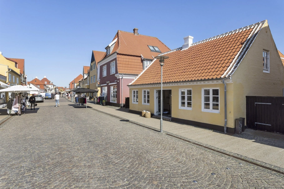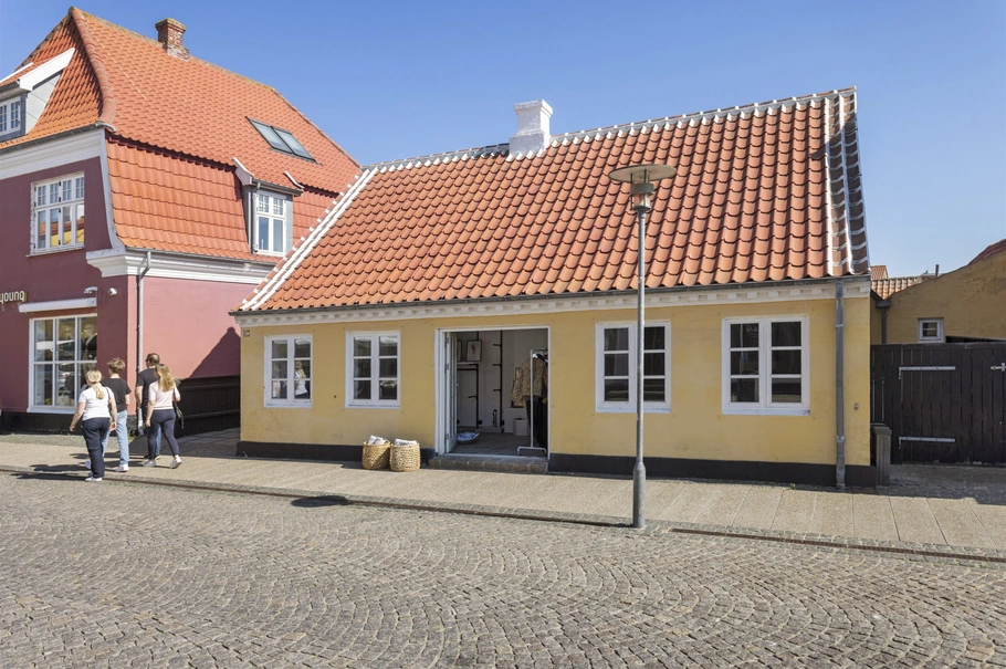 En butik i den velkendte Skagensstil med de karakteristiske gule facader, hvide kanter og det røde tegltag. Bygningen er dateret tilbage til 1880 og sidenhen totalt renoveret, således at lejemålet fremstår velholdt og yderst imødekommende.
