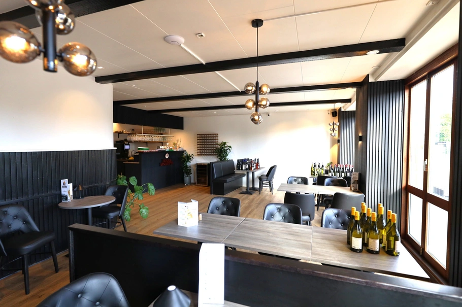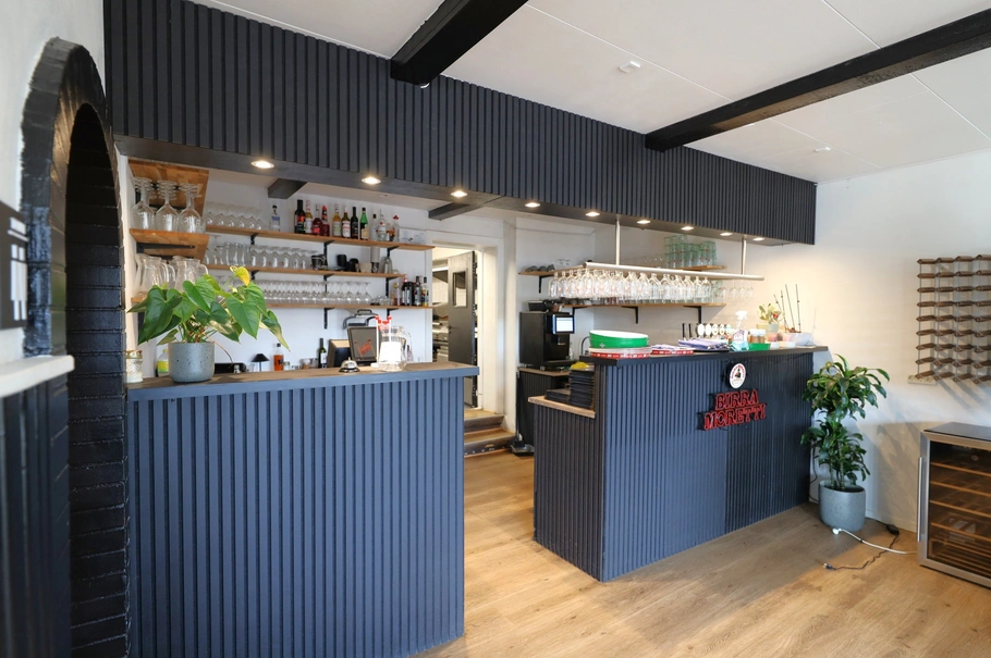 Lejemålet har et samlet etageareal på 154 m², og lokalet er indrettet med ét stort serveringslokale, køkken, anretterkøkken, kontor, to kundetoiletter samt en rummelig terrasse til udendørs servering.