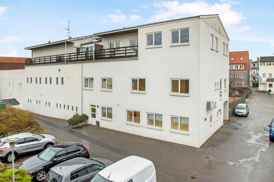 Bygningen fremstår i en fin stand med hvidmalet pudset facade. Lejemålet har tidligere været anvendt til klinik og vil derfor være oplagt til dette, men egner sig også godt til andet liberalt erhverv.