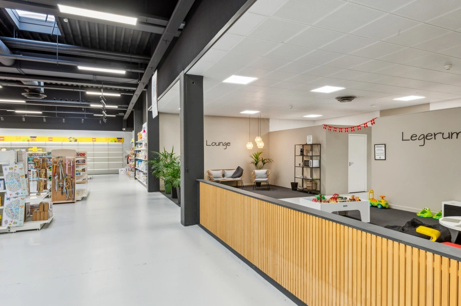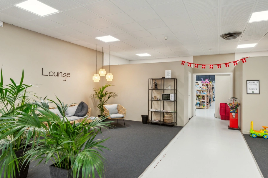 Lejemålet er velindrettet med vindfang med skydedøre, stort regulært og højloftet butikslokale med store udstillingsvinduer. Butikslokalet som står i en flot stand med bl.a. ny LED belysning er velegnet til opdeling i flere afsnit. Desuden er der i tilknytning til butikslokalet gode lagerlokaler med 2 aluporte samt fine personaleforhold og regulære kontorlokaler.