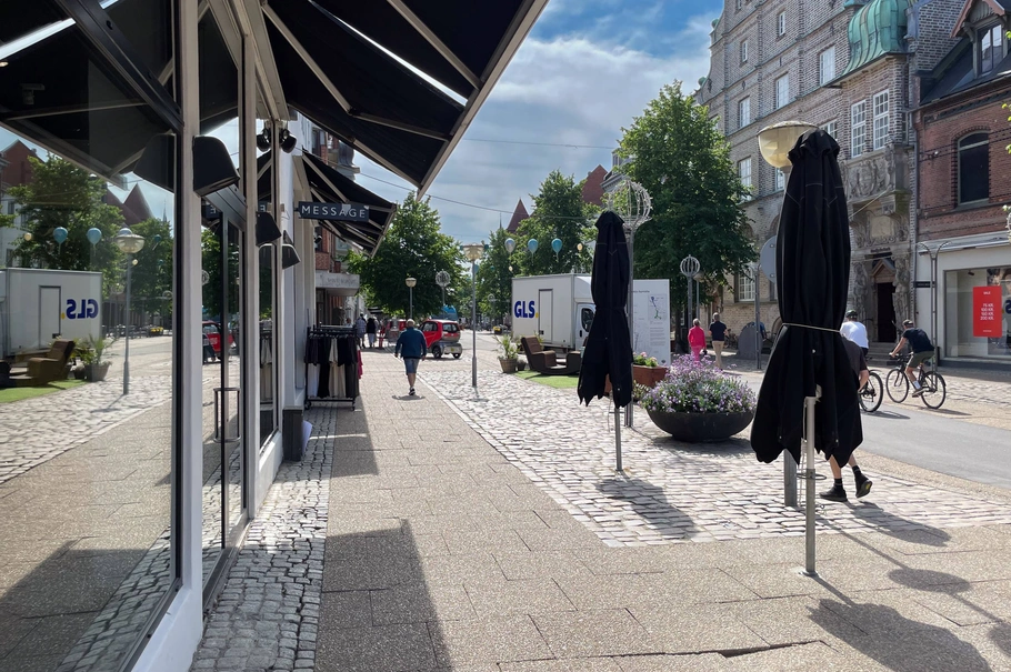 Højloftet og markant butikslejemål attraktivt beliggende i centrum af Hjørring, med stor synlighed ud til gågaden og den kendte Springvandsplads, som er centrum for mange af aktiviteterne i Hjørring by.
