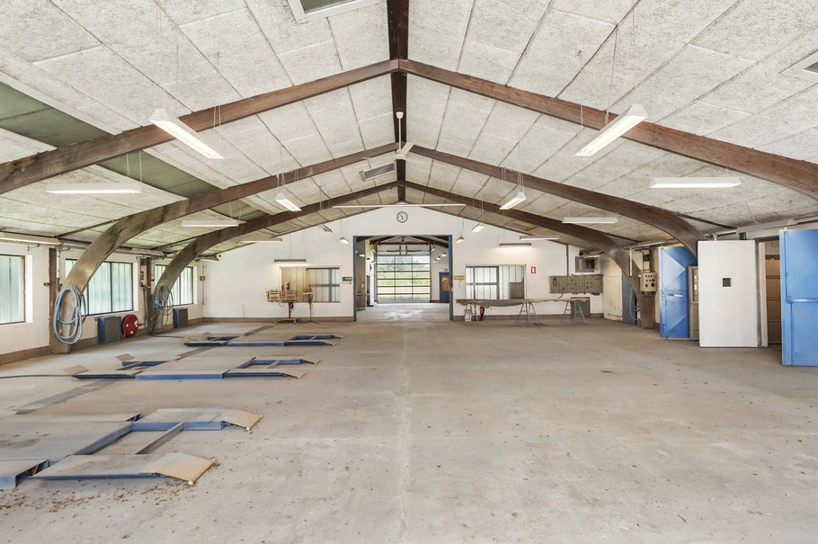 Ejendommen har tidligere været anvendt til autolakeringsværksted og derfor er ejendommen indrettet med 2 malerkabiner, 2 varmekabiner, alt i ventilation m.m. I forreste værkstedshal er der 3 stk. lifte og stor portåbning.