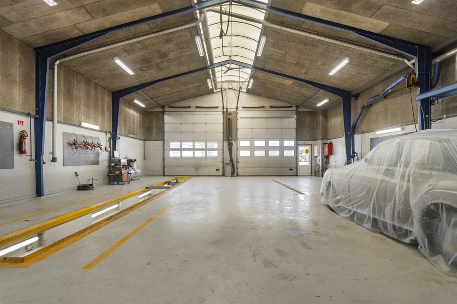 Udendørs findes et stort asfalteret areal, som giver gode muligheder for parkering og varemodtagelse. Der er desuden en stor vaskeplads med olie- og benzinudskiller.