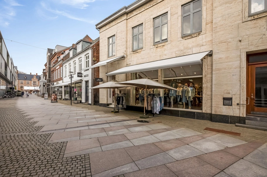 På en ideel placering nær IP Jacobsen Centret og centralt i gågaden, giver det potentielt mange besøgende og forbipasserende. Ligeledes er der flere parkeringsområder i umiddelbar nærhed.