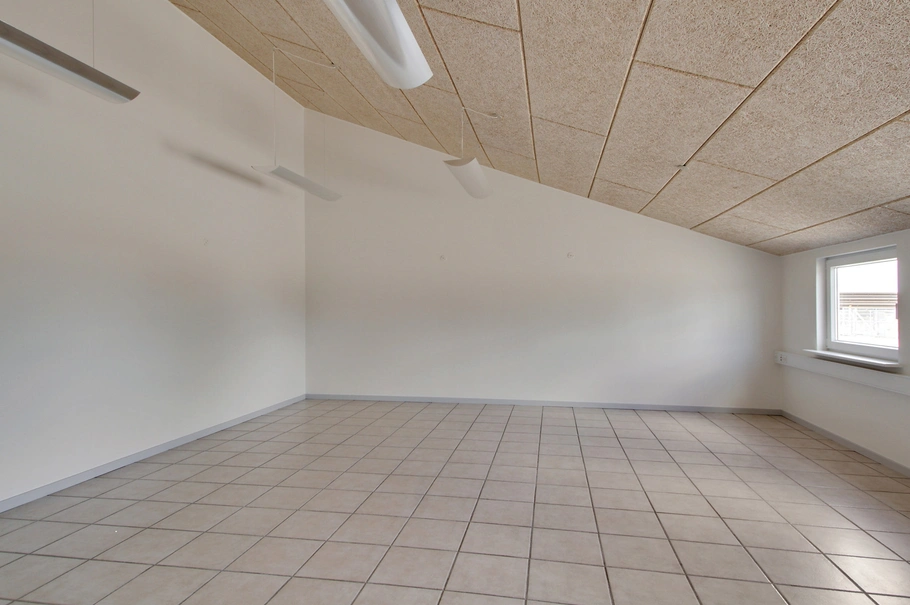 Lager-/produktionsafsnittet udgør 1.183 m² og har et godt lysindfald fra ovenlysvinduerne. Der er krandækning i hallen og 80 ampere strømforsyning. Hallen opvarmes med naturgas. Der er adgang til hallen via 3 store alu-porte. Lofthøjden i hallen er 7,5 m i kip og 4,5 m i siderne. Der er LED belysning i hele produktionsafsnittet.