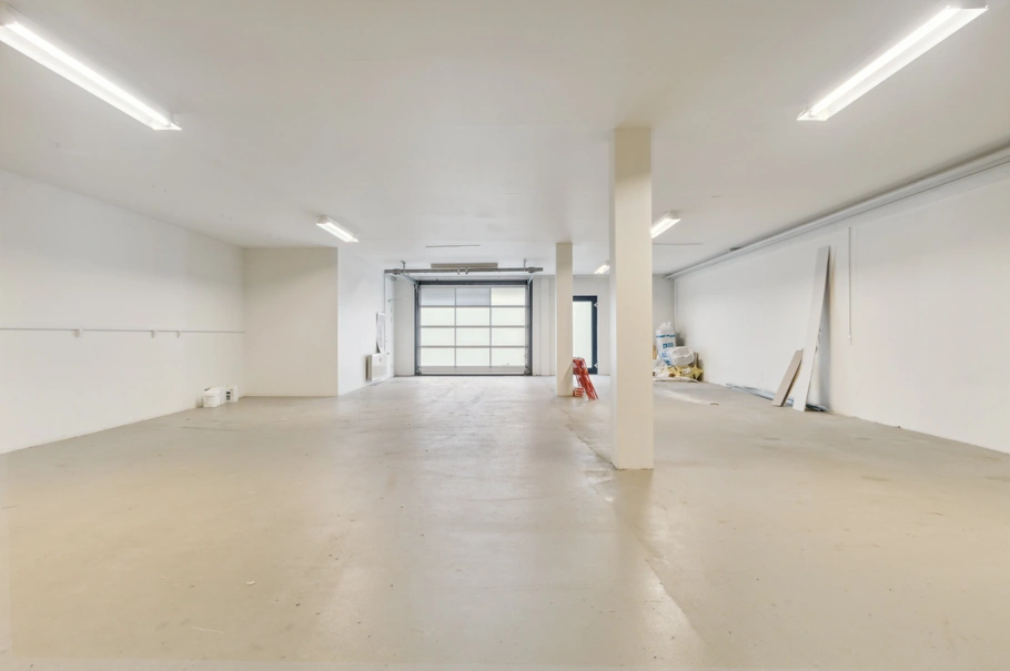- Lageret har en loftshøjde på 2,85 meter og adgang via dør med matteret glas.
