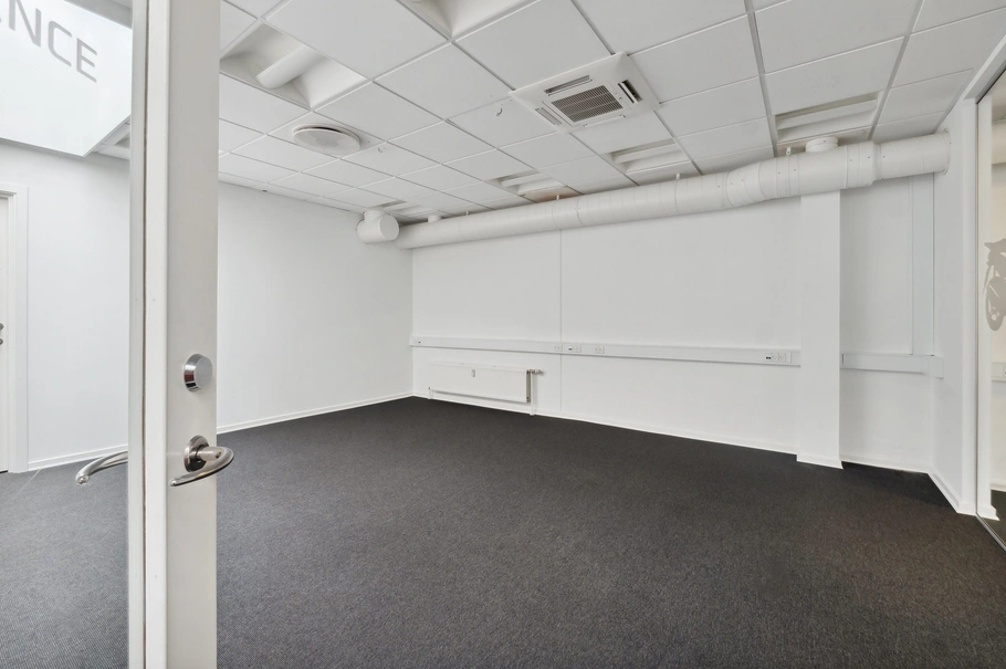Godt indrettet lejemål på 358 m² med klimaanlæg og ovenlys. Lejemålet er indrettet 5 kontorer inkl. mødelokale med glasvægge, et storrumskontor centreret i lejemålet samt 2 toiletter.