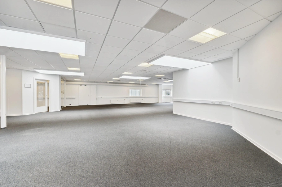 Øvrige ledige lejemål p.t. 139 m², 148 m² og 393 m². Lejemålene, som ligger op ad hinanden, kan med fordel lejes samlet, således at kontorarealet kan udvides efter behov helt op til 1.038 m². Alle kontorerne, der er lyse og imødekommende, udlejes til overkommelig husleje på 750 kr. + driftsudgifter på 57 kr. pr. m². Beløbene tillægges moms.
