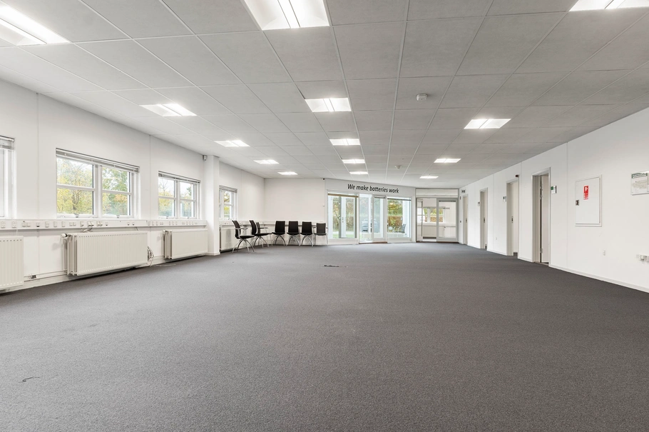 Fra storrumskontoret er direkte adgang til lager-/produktionsarealerne, som p.t. er indrettet med yderligere kontorer.