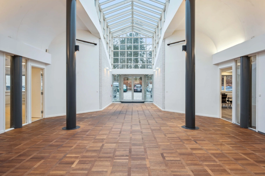 - Stort lejemål på 846 m² beliggende i grønne omgivelser tæt på Kokkedal Industripark.