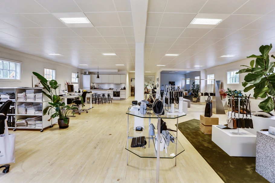 Lager, kontor og showroom i Brønsholm landsby.