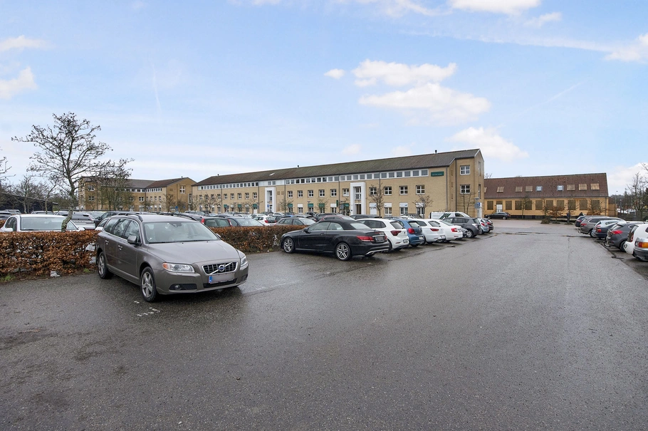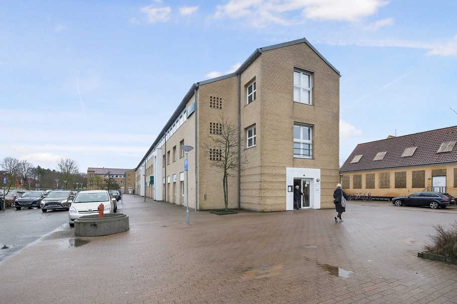 Ejendommen er opført i 1990 med en tidstypisk og moderne facade med gule mursten og hvidrammede vinduer. Fra bygningens forside side har I adgang til en større parkeringsplads, hvortil cykelparkering skal findes ved bagsiden; og indendørs huserer den flere typer af erhverv, hvilket giver en seriøs og ambitiøs stemning til de forskellige områder.