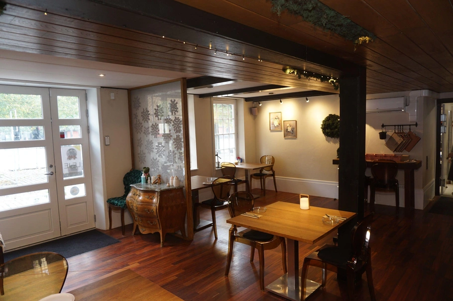 Størrelse: 152 m² restaurantlokale + ca. 160 m² solrig gårdhave med plads til ca. 50 gæster.