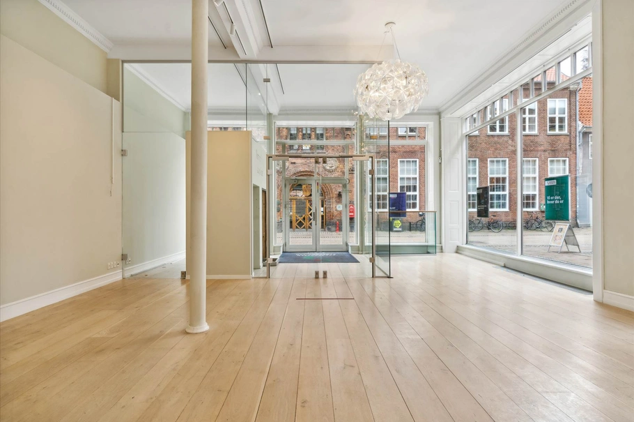 En god facade og vinduespartier ud mod både Stengade og Brostræde giver en optimal eksponering af din butik og varer.