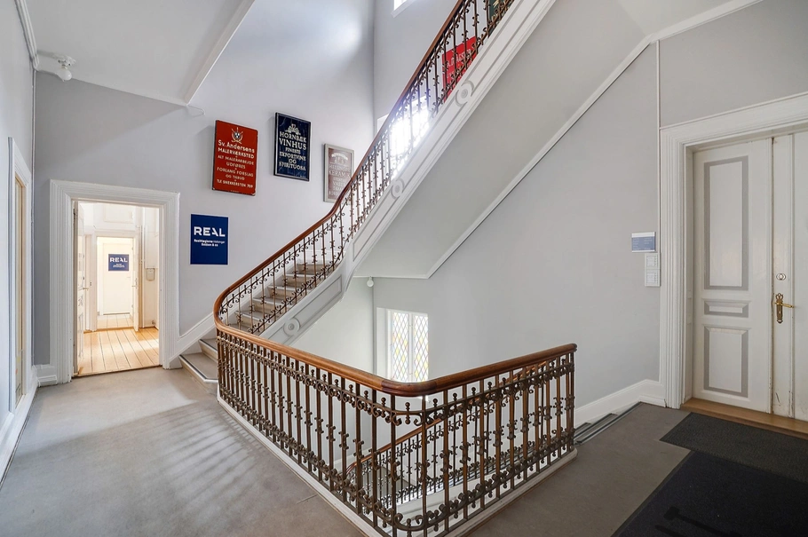 Erhvervs lejemålet består af 9 lejemål, alle placeret på 1. sal. Indgangen til erhvervs lejemålet sker direkte fra Stengade, hvor man bliver mødt af - uden tvivl - Helsingørs smukkeste trappeopgang, som fører op til lejemålet.